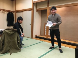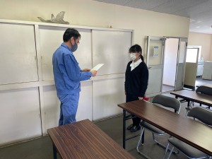 新入社員記念品贈呈:末永社員、三木社員