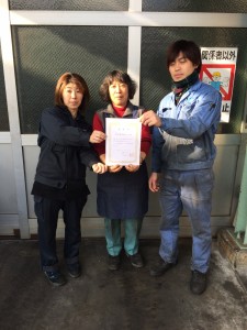 個人の部:本社工場加藤社員、団体の部:林田工場美化チーム(東原社員、唐渡社員、植田社員)が受賞されました。