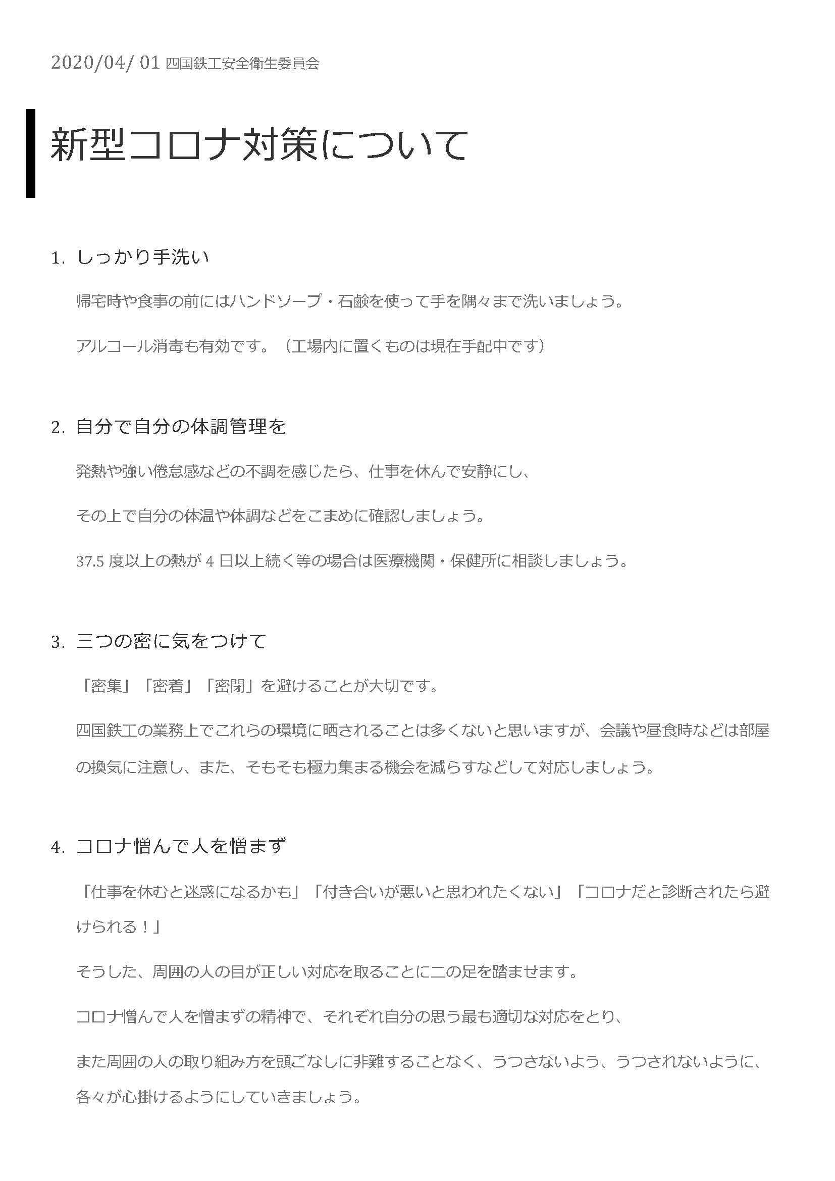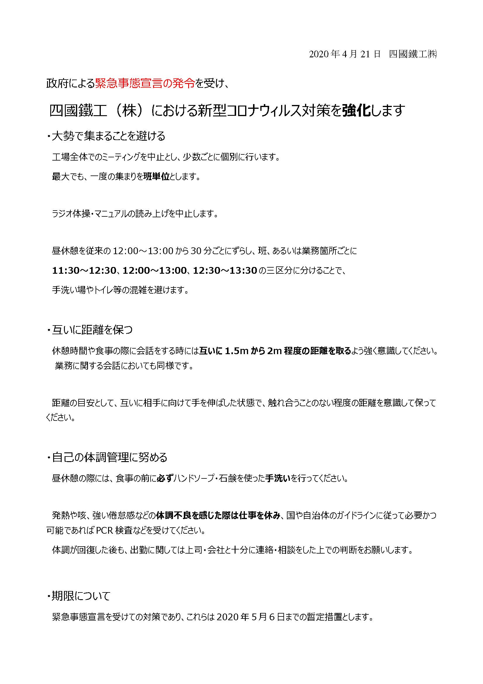 2020年4月1日、新型コロナウイルス感染拡大防止策として、従業員の健康を第一に考え、本日より当面、緊急対策を行うことを決定しましたのでお知らせします。