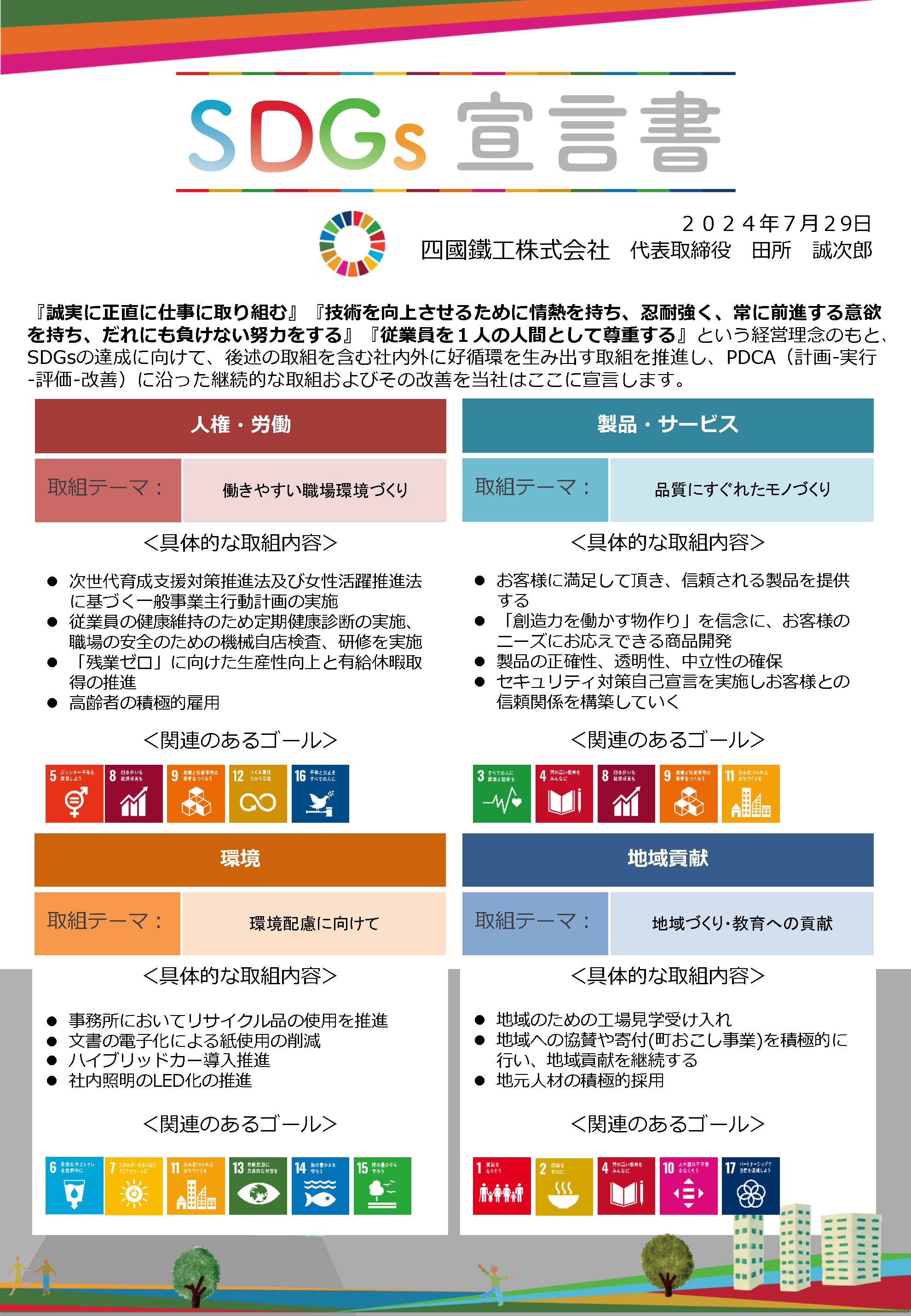 四國鐵工株式会社は、国連が提唱する「持続可能な開発目標(SDGs)」に賛同し、積極的に取り組むため、SDGs宣言を公表しました。